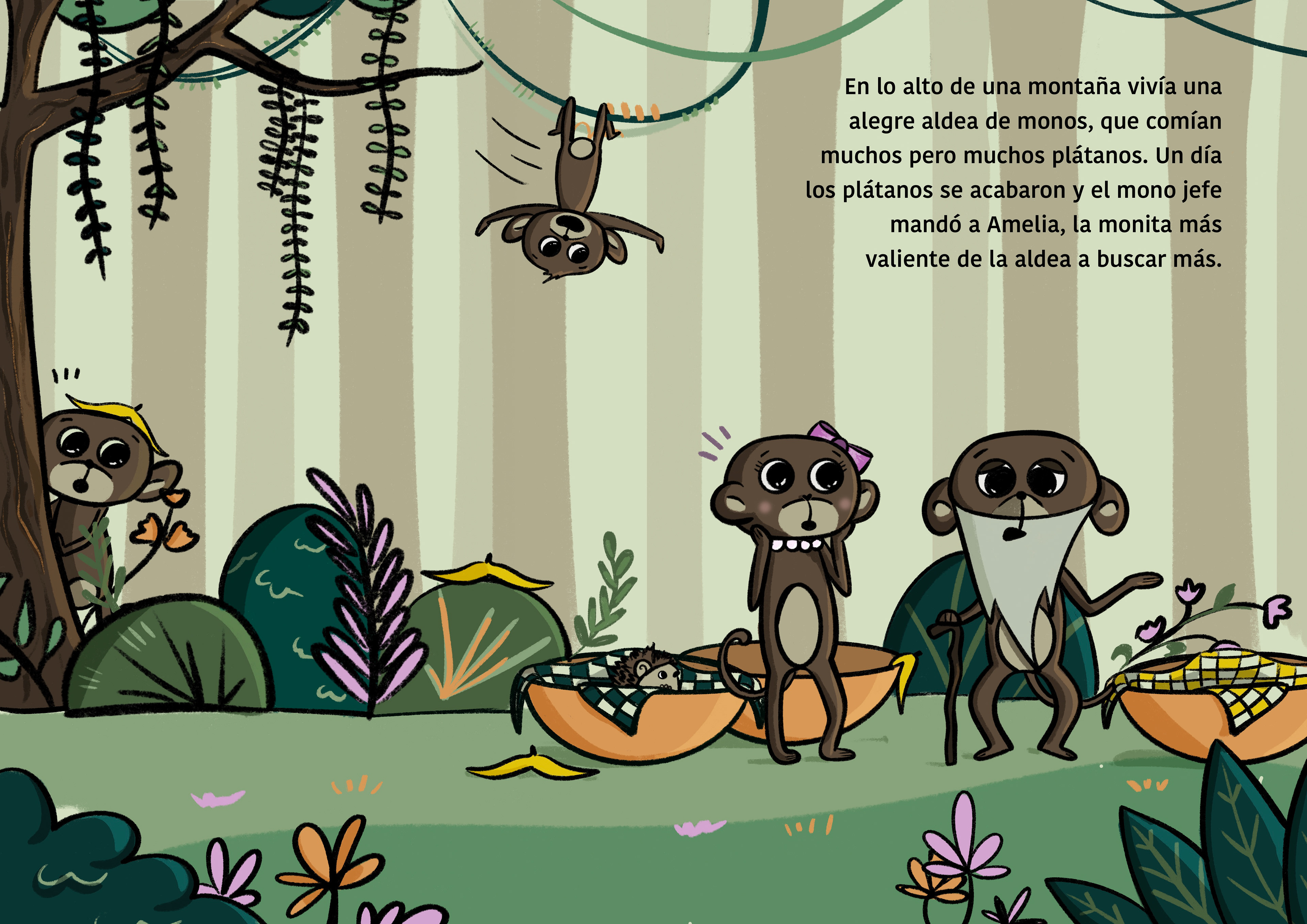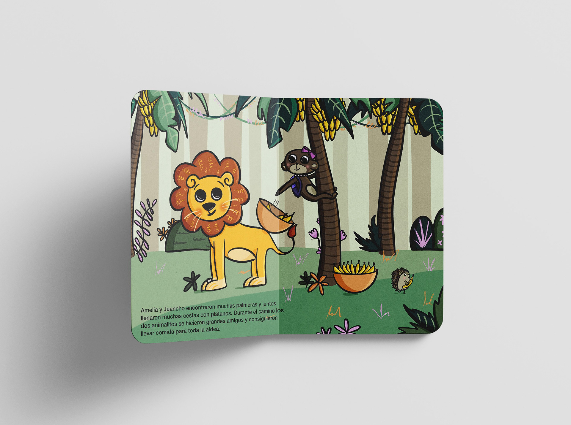 Este proyecto surge desde el briefing de crear tanto la historia como las ilustraciones de un cuento infantil. Para ello, me basé en uno que se inventó mi padre y me solía contar cuando era pequeña. A lo largo del proceso he trabajado ilustraciones coloridas y llamativas buscando transmitir valores como la amistad y la cooperación a través de personajes sencillos pero entrañables.